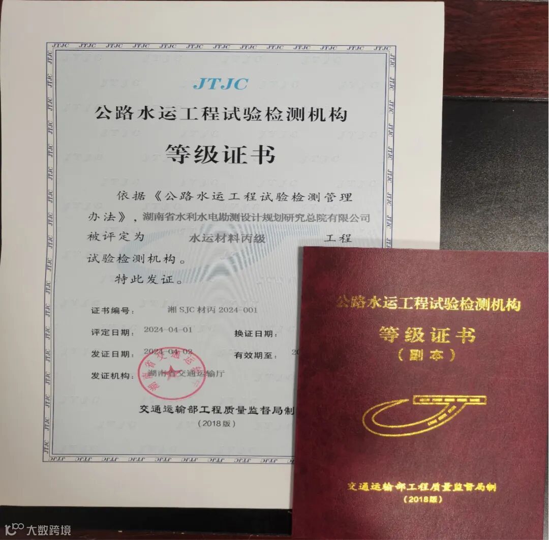近日,湖南省水电设计院公司顺利取得公路水运工程试验检测机构水运材料丙级证书,正式获得了进入公路水运检测领域的“入场券”。
