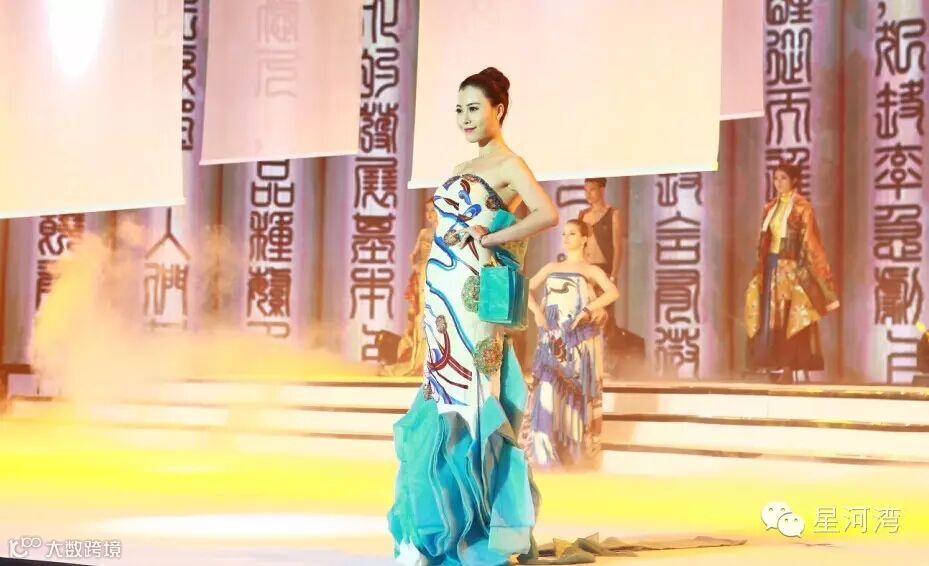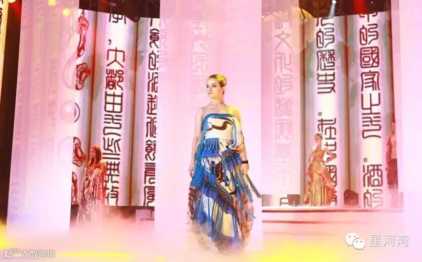 中国十佳服装设计师屈汀南的《致敬敦煌》,通过华美服装,呈现流行时尚与千年古都相辉映的流光溢彩。