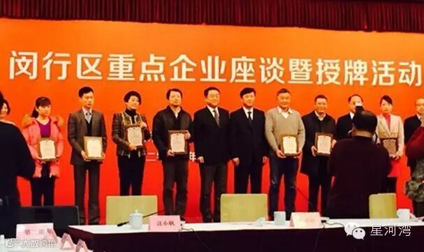 日前,“闵行区2014年度重点企业座谈暨授牌活动”在上海闵行区政府会议中心隆重举行,闵行区区委书记赵奇、区长赵祝平等政府领导出席。活动对区内重点企业进行授牌仪式,星河湾集团分获“经济突出贡献企业”和“最具社会责任企业”两项荣誉。