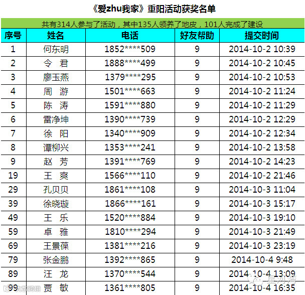 国庆期间,星河湾发起的——“『爱zhù我家』金秋重阳传爱意,万元大奖众分享活动”得到了数百人踊跃参与,湾湾君感谢大家的鼎力支持~ 经过紧张的后台数据统计,获奖名单终于出炉,恭喜以下获奖的盆友们,获得价值500元的星河湾酒店消费卡。