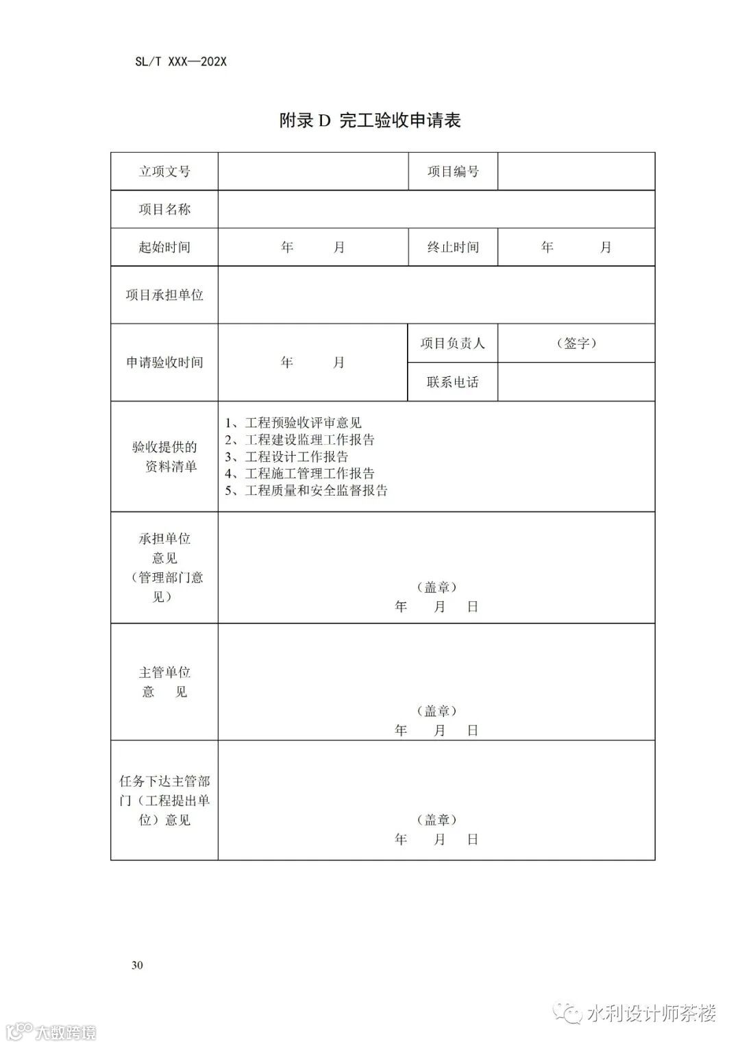 附表 D 完工验收申请表
