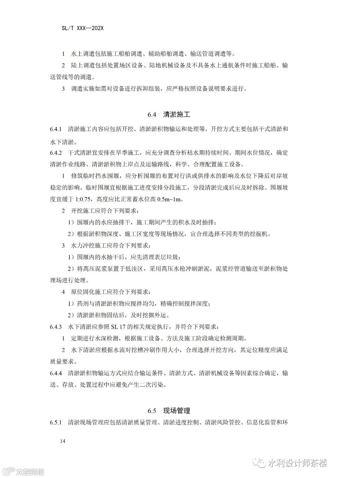 对清淤实施过程中施工前准备、施工设备调遣、清淤施工、现场管理等方面做出相关规定。