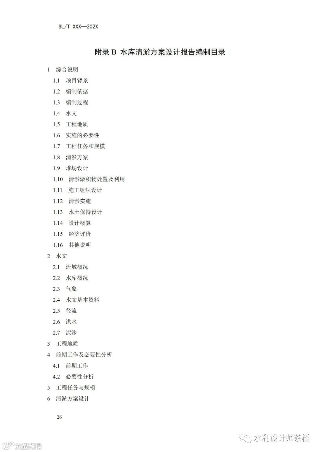 附表 B 水库清淤方案设计报告编制目录