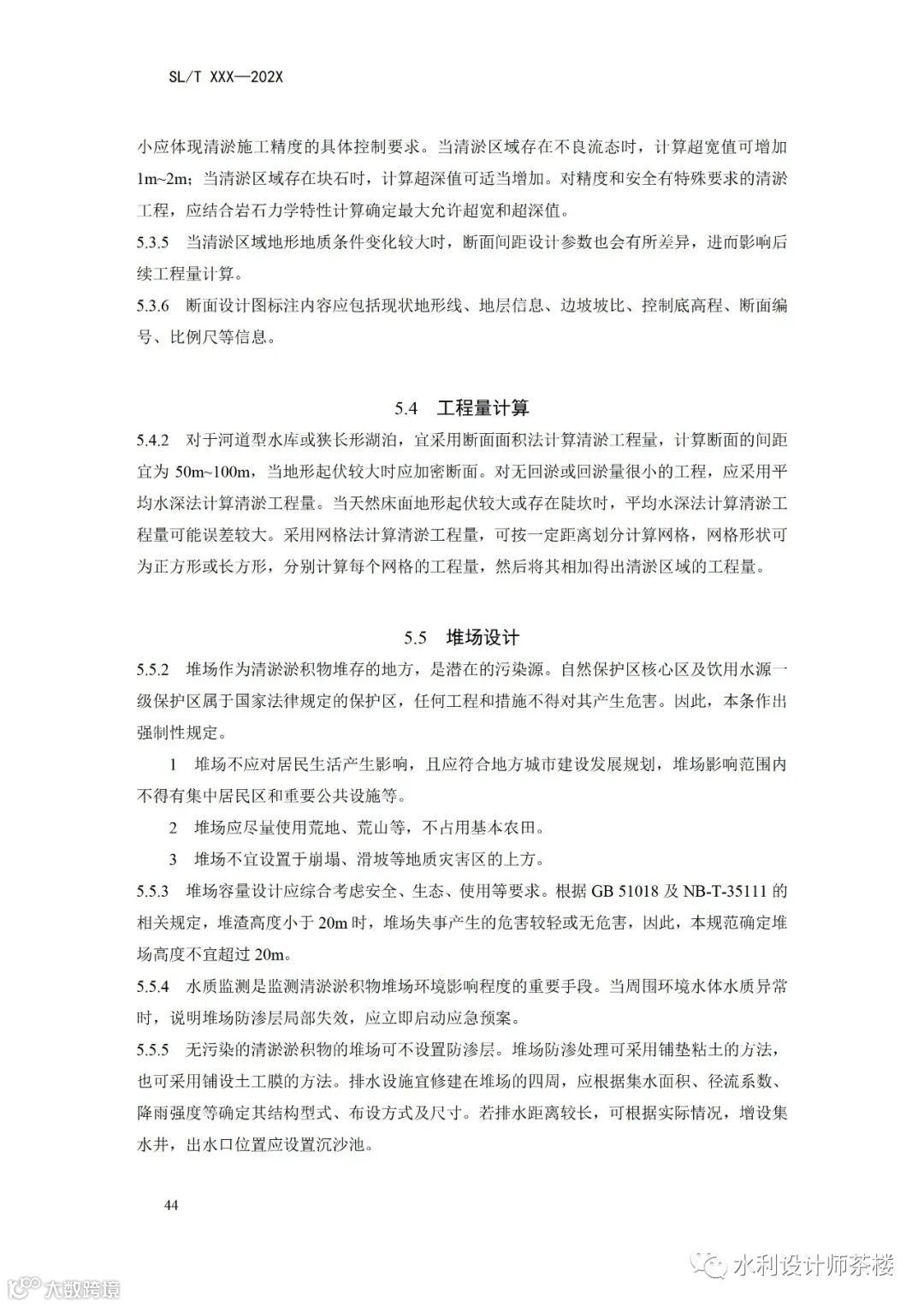 对清淤设计中平面布置、断面设计、工程量计算、堆场设计、施工组织设计等内容进行了规定。