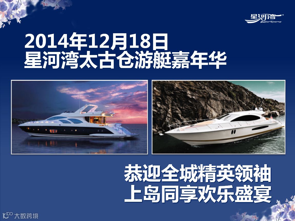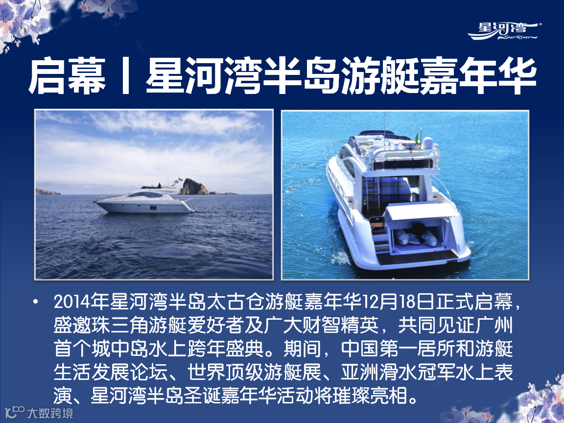 导读:2014年星河湾半岛太古仓游艇嘉年华将在12月18日正式启幕,盛邀珠三角游艇爱好者及广大财智精英,共同见证广州首个城中岛水上跨年盛典。