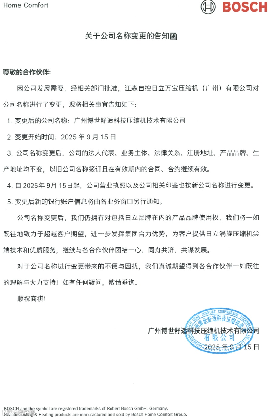 导读:日立压缩机变更函,北京嘉兴裕隆科技有限公司&广州嘉欣裕隆贸易有限公司