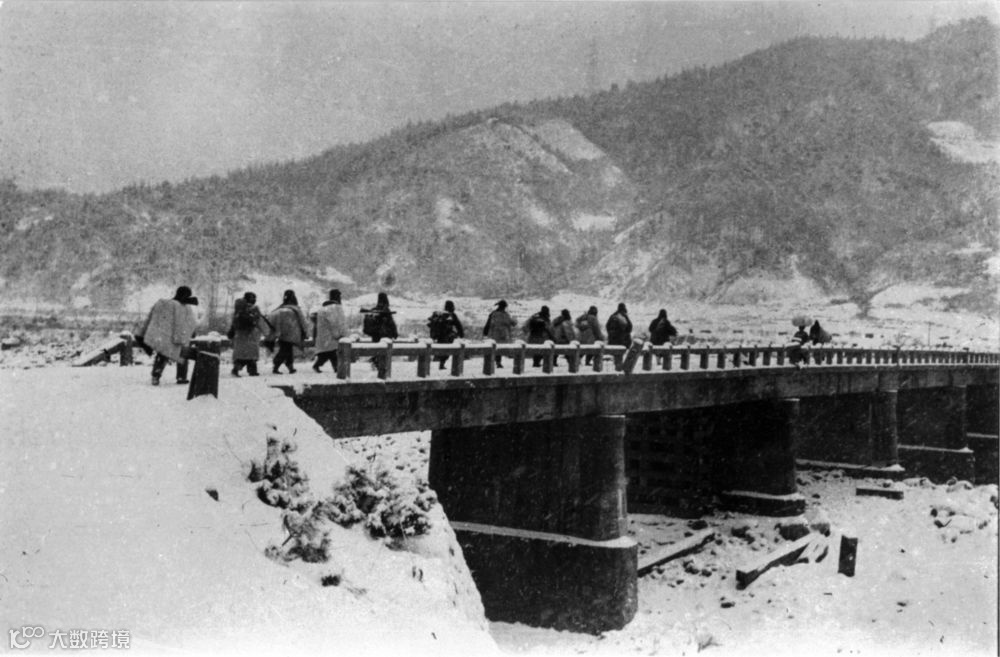 志愿军第9兵团战士通过长津湖大桥。(抗美援朝纪念馆供图)