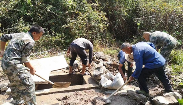 新晃鱼市镇团溪村老寨水厂修缮水源池。
