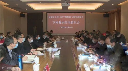 1月10日至11日,毛俊水库工程导流底孔下闸蓄水阶段验收会议在蓝山县召开。省水利厅副厅长范金星出席并讲话,永州市副市长吴恢才,市水利局党组书记、局长黄保平,市水利局二级巡视员廖荣良,蓝山县领导邓群、唐伟文、唐建伟参加会议。