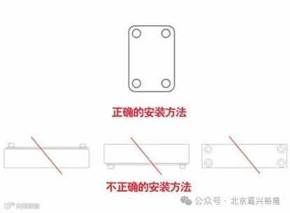 空调板换不锈钢钎焊板式换热器首先必须是竖直安装,不能水平或者倾斜安装,只有竖直安装才更有利于氟与水的充分交换,安装如图: