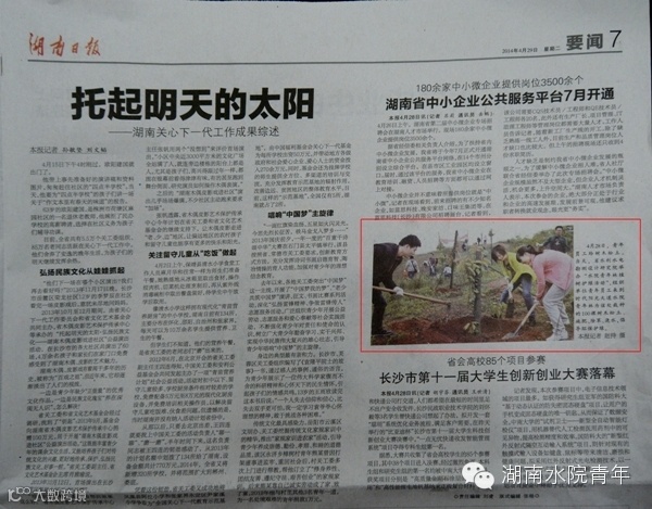 湖南日报:水院青年林植树护绿活动
