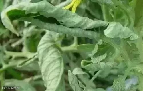 病毒病一般可通过蚜虫、粉虱等传播。当植株出现病毒病时,会由上而下出现全部或部分的叶片向上弯卷,同时出现叶片褪绿、变小、皱缩、丛生等现象,严重时只有叶脉而无叶肉,多表现在心叶及上部叶片上。