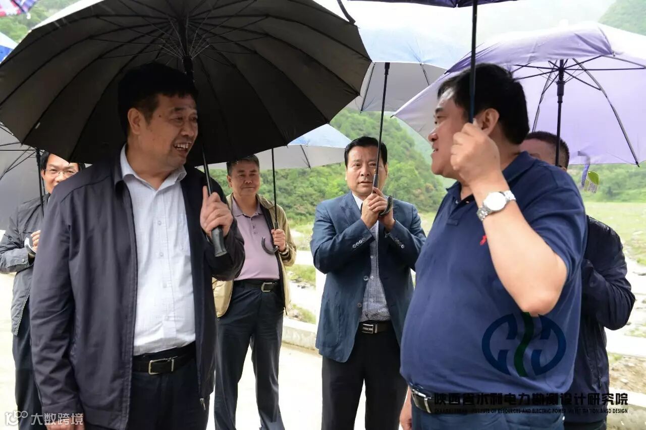 9月4日下午,省水利厅厅长王拴虎踩着泥泞,冒着大雨,到宝鸡通关河水库坝址进行现场调研。