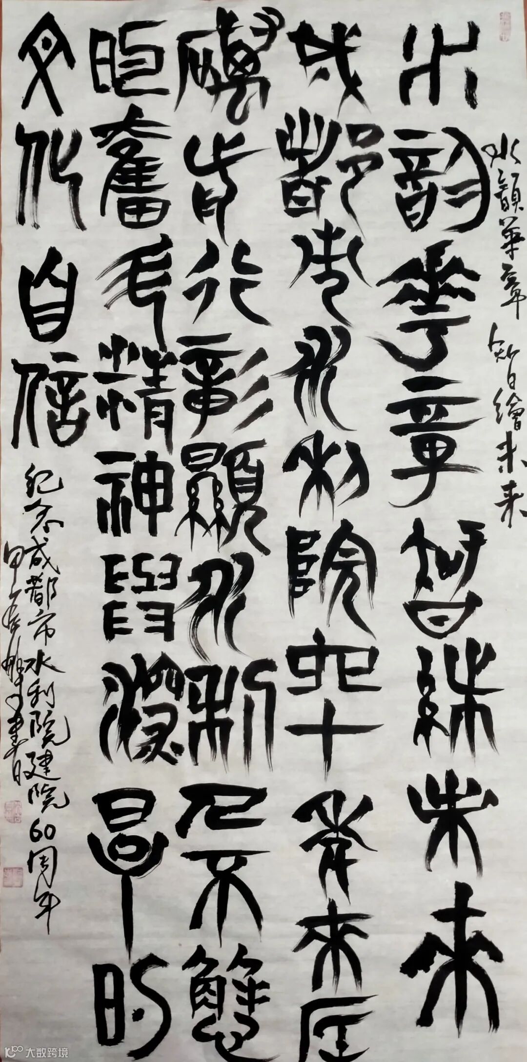 释文:水韵华章,智绘未来,成都市水利院六十年来砥砺前行,彰显水利人不懈的奋斗精神与深厚的文化自信。