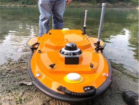 ▲ 无人船(水下地形测量) 无人机(陆面地形测绘)