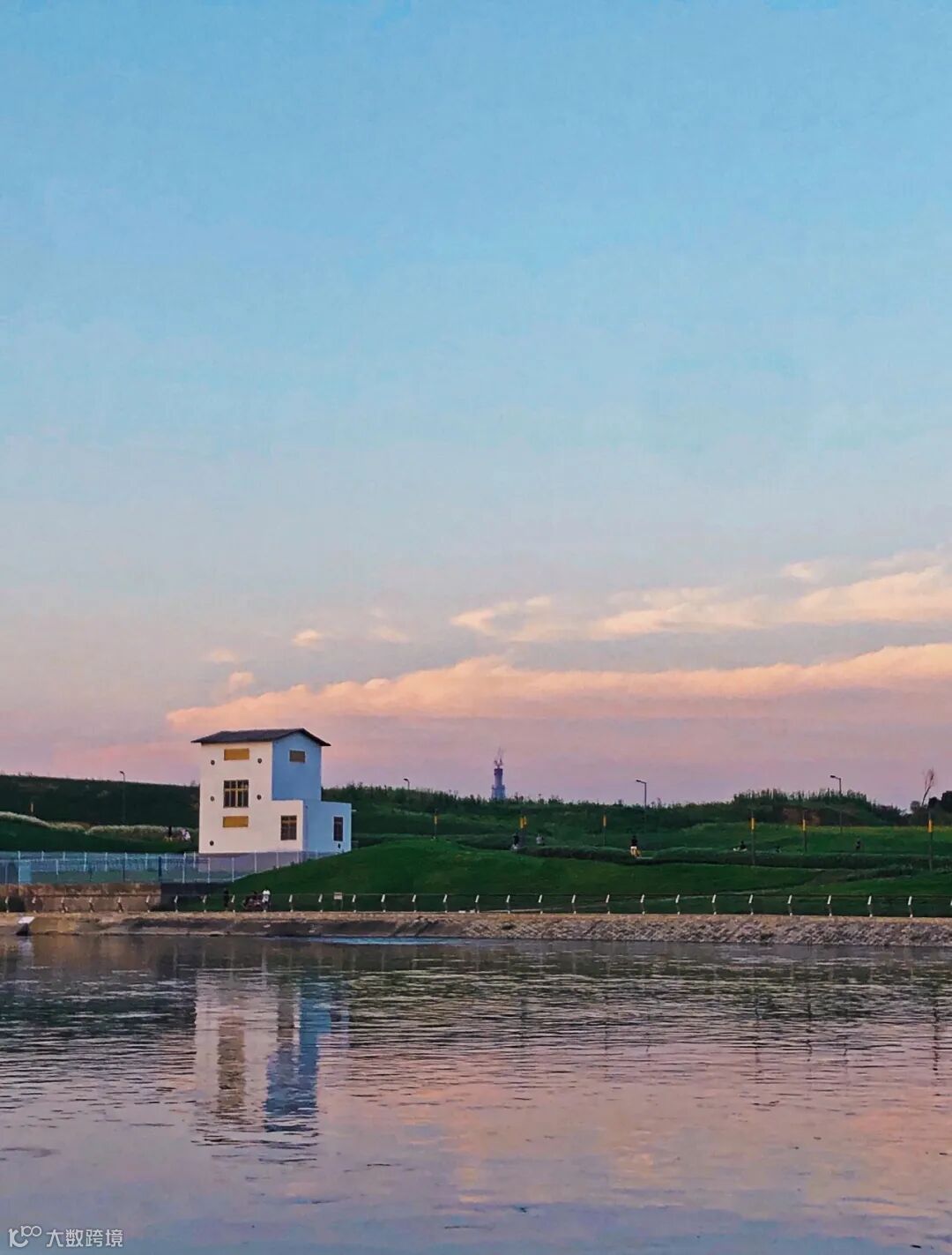图中所呈现的是夏季中和湿地公园傍晚的景色。绿草绵延,与河流、晚霞相映,展现出成都城区的自然美景,表现了成都公园城市的建设成就。