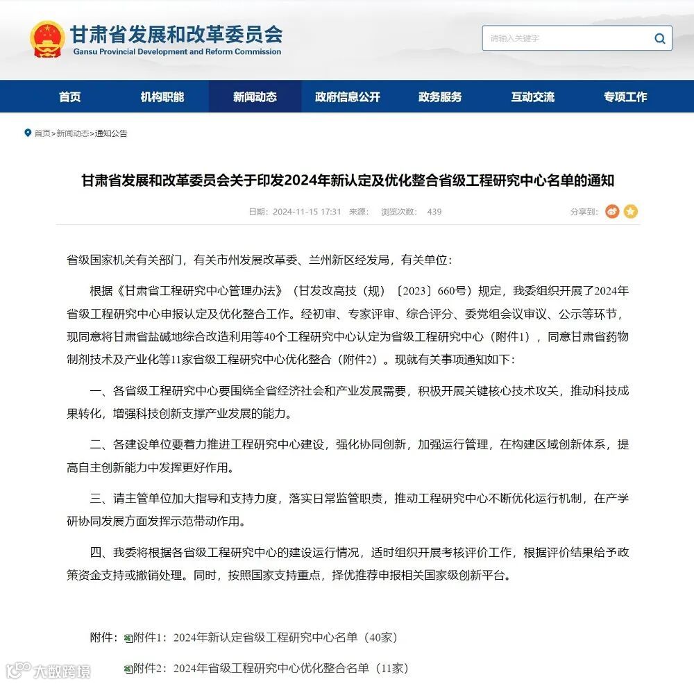 省级工程研究中心是我省服务重大战略和重点工程建设需求,开展关键技术攻关和实验研究,为促进传统产业转型升级和新兴产业发展提供技术支撑,由省发改委组织认定。2024年,省发改委面向全省具有较强研究开发和综合实力的兰州大学、中国科学院西北生态环境资源研究院等高等院校、科研院所、企业共征集认定了40个省级工程研究中心。