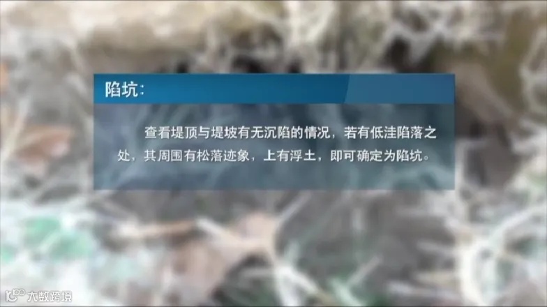 ③从虚实来鉴别。防浪梢排或是表面铺了草袋、麻袋的险工段,下面是否被冲刷或淘空,可上去用脚踩一踩,如骤然下陷,即说明有险。