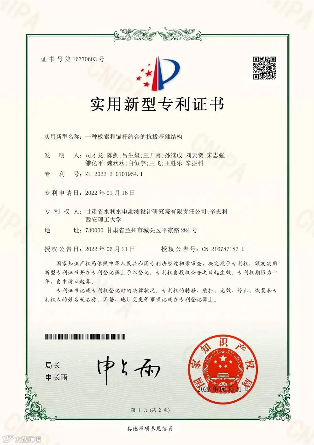 专利1:一种多板串联的板索抗拔基础结构