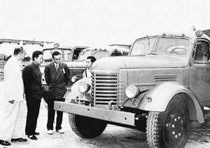 1957年秋,客商在第二届广交会上洽谈解放汽车项目