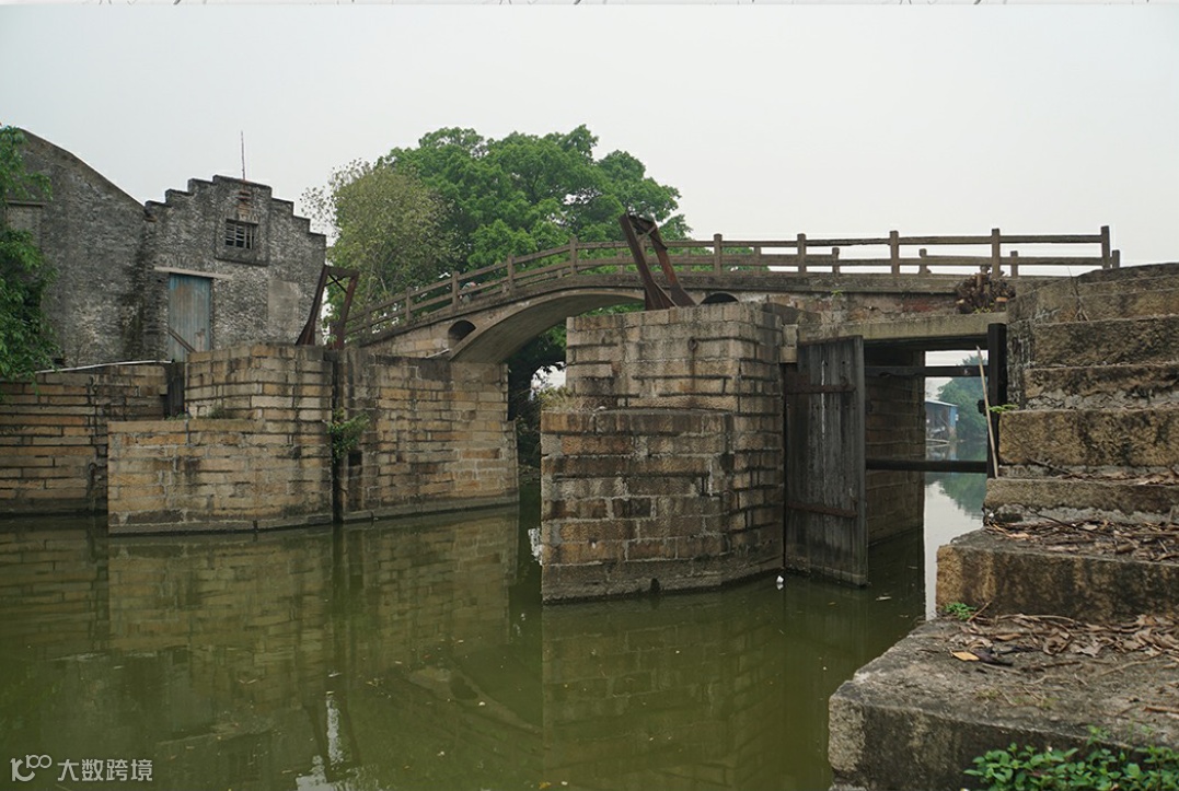 此外,为控制围内外水量,古人在围堤上筑窦设闸。自此桑园围形成了沿江有堤、河涌有围、围内有排灌沟渠的灌溉系统,平时通过闸窦调节围内外水量,进行农田排灌;汛期来临则关闭窦闸大门。