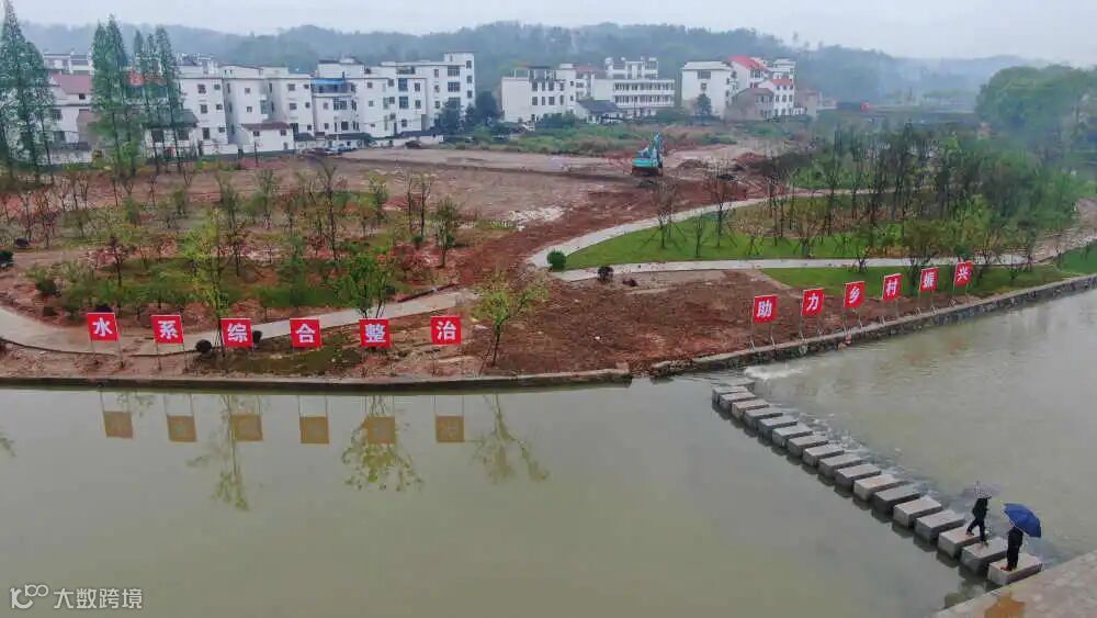站在江西省德安县林泉乡工程现场,记者将无人机升到三百米高空,看到了一个与一年前完全不同的水美乡村画面:狭窄不畅的河道,已经变得开阔顺畅,塌坡严重的两岸建成了新的生态型护坡护岸,沿河村民免去了洪涝袭扰,河道不远处新建的一座污水处理站已经发挥作用,河流水质不再受污水直排影响。