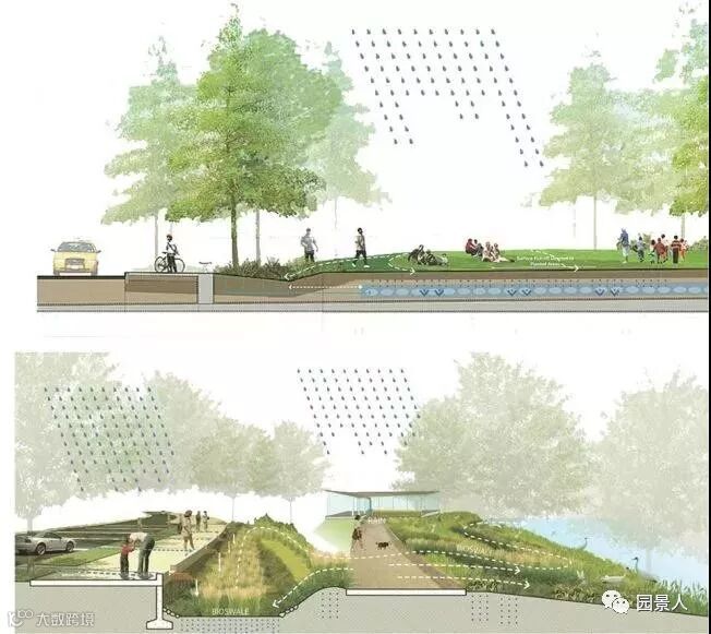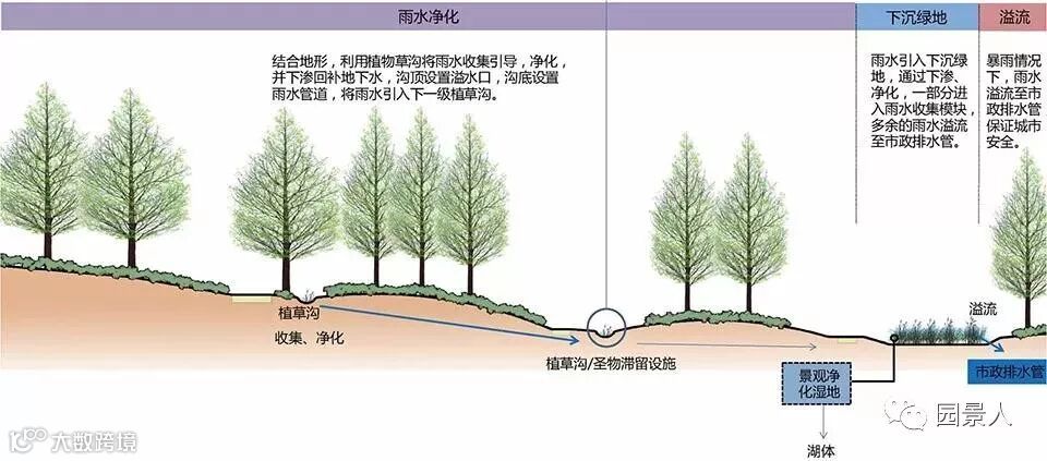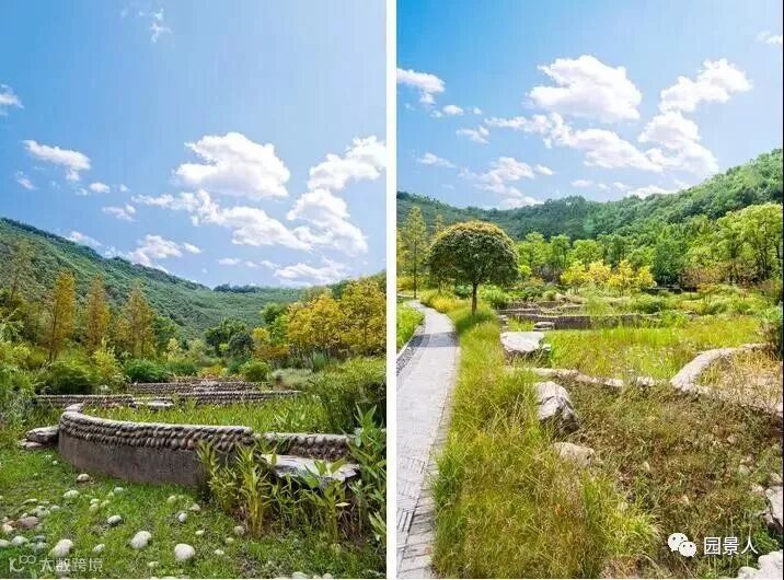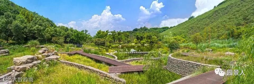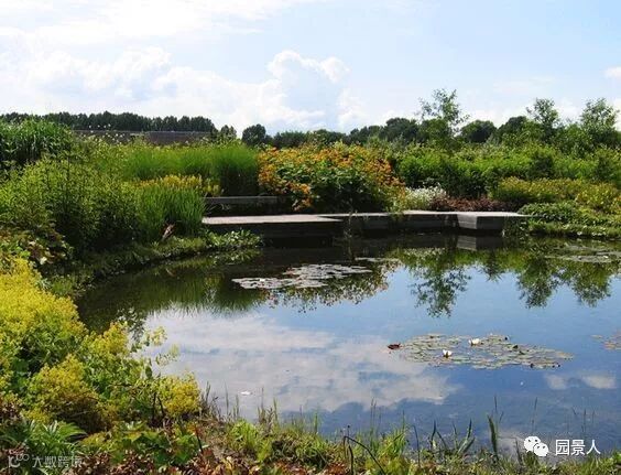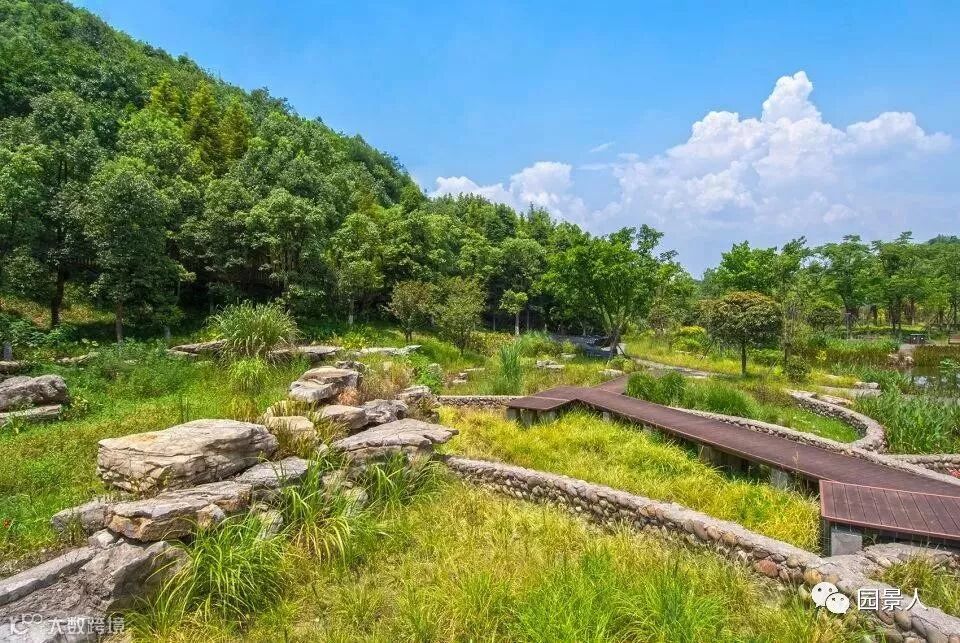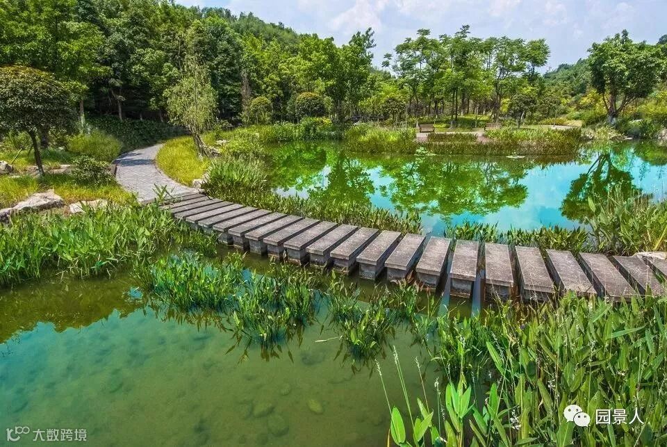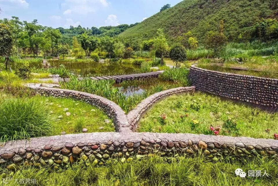 在湿地景观中,运用最多的就是自然式土岸,其中堆石法、浚潭法、枯木法、植栽法等是较为常用的做法。