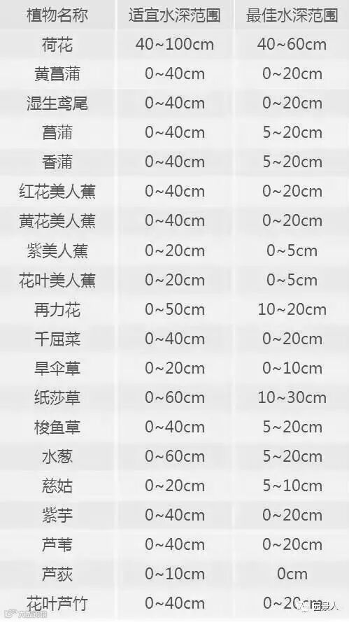 不同的水生植物对水深的适应性是不同的,即使同一种植物在不同的生长阶段或同种植物的不同品种对水深的要求也不尽相同。因此,水的深度是设计和施工人员必须要考虑的问题,应根据现状地形和竖向设计等深线合理布置植物品种,保证植物的正常生长。