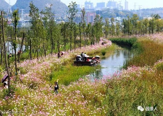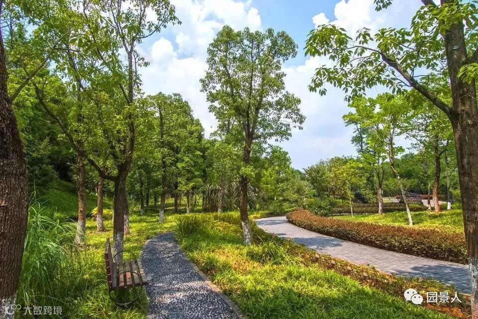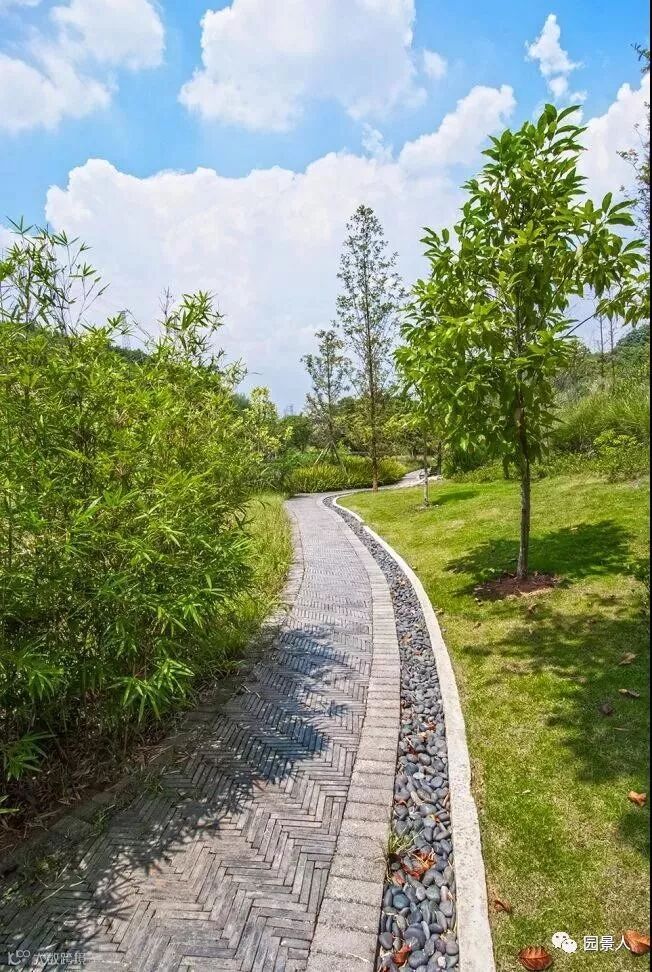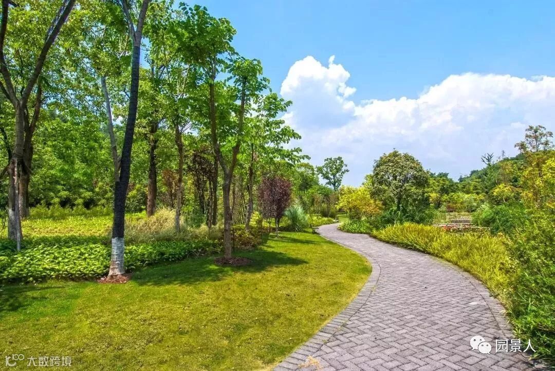 自然式土岸的植物配置结合蜿蜒曲折的地形,有近有远,有疏有密,有断有续,弯弯曲曲,自然有趣。