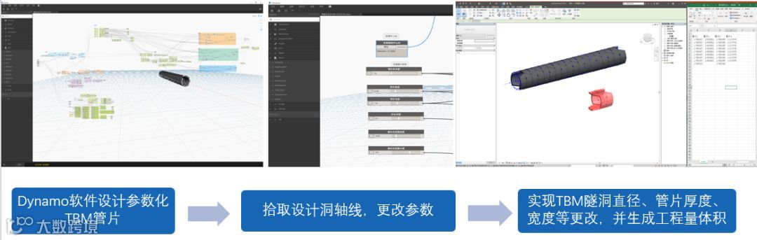 引水隧洞根据洞轴线布置,在Civil3D中创建隧道的平纵横剖面,产生隧道简易模型。提取隧道模型的中心线为点文件,需要将其转换为相对坐标。采用Revit软件中的Dynamo,制作TBM管片,运行拾取洞轴线,实现TBM隧洞管片参数化设计。