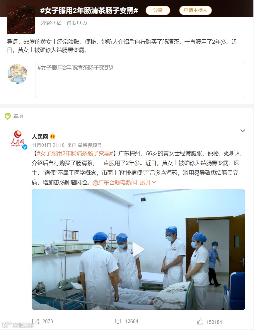 连续两年服用肠清茶导致结肠黑变病的新闻,