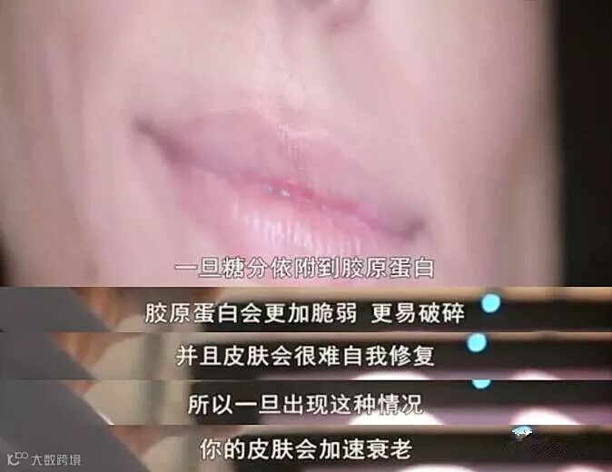 原来葡萄糖会依附在胶原蛋白上,胶原蛋白就会变得脆弱,从而发生破碎。