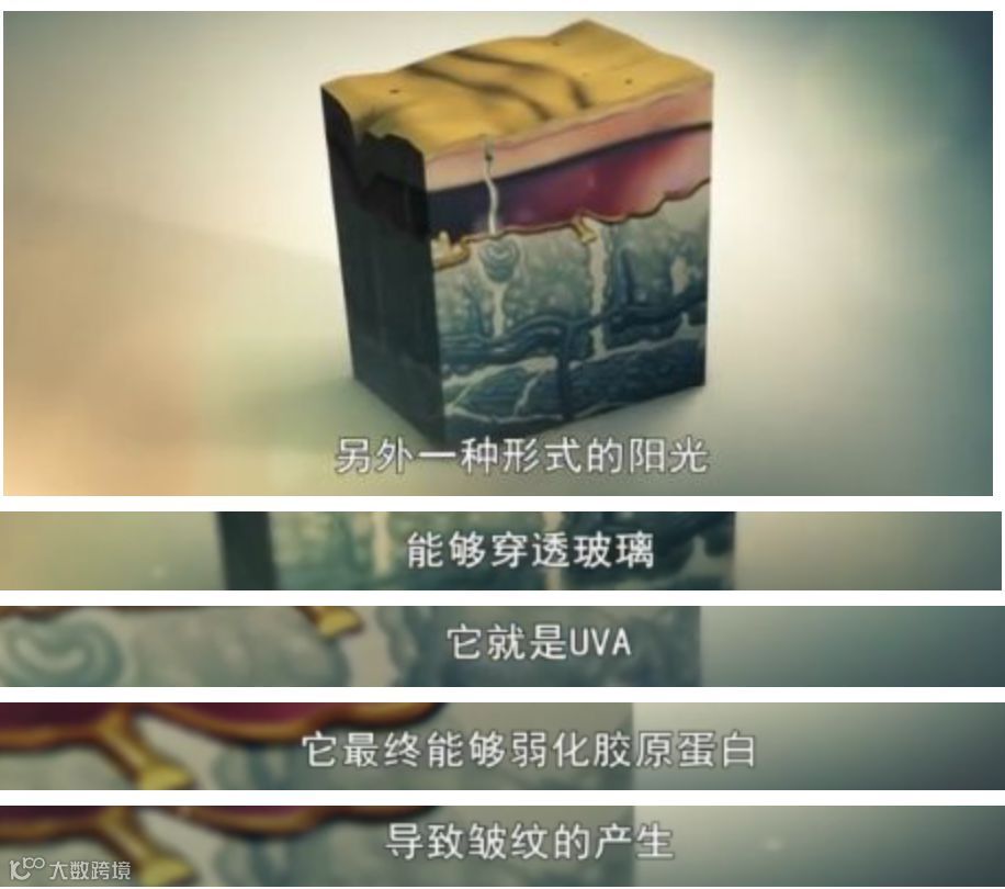 太阳光线中,有两种“杀伤性武器”:UVA(长波紫外线)和UVB(短波紫外线)。两者皆不容小觑,UVB会把人“晒伤”,而UVA会使人“晒黑晒老”。令人震惊的是:UVA无孔不入,还能穿透玻璃!