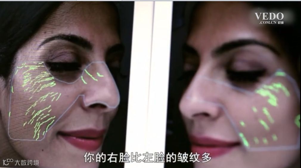 当采访者阿里参与实验中时,也显示她的右脸皱纹也比左脸要多。