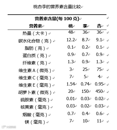 桃李杏的营养价值
