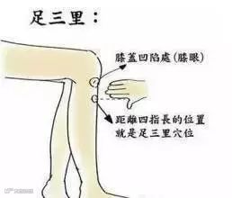取穴:足三里,外膝眼下3寸,距胫骨前缘1横指。