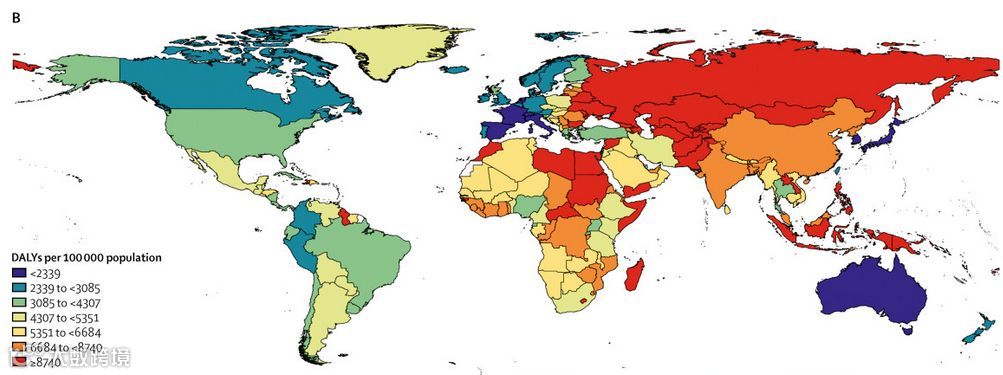这项研究发布了一张“因饮食结构问题引发的死亡率的世界形势图”。