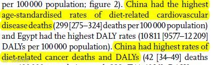 在2017年的统计中,中国因为饮食结构问题造成的心血管疾病死亡率、癌症死亡率都是世界人口前20的大国中的第一名。
