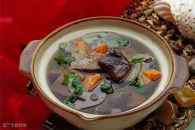 这可是煲汤的关键。研究发现,原料与水分别按1∶1、1∶1.5、1∶2等不同的比例煲汤,汤的色泽、香气、味道大有不同,结果以1∶1.5时最佳。对汤的营养成分进行测定,此时汤中氨态氮(该成分可代表氨基酸)的含量也最高,甚至高于用水较少时。这是因为水的加入量过少,原料不能被完全浸没,影响了汤中营养成分的浓度。随着加水量的增加,汤中氨态氮被稀释后浓度会有所下降。但是,汤中钙、铁的含量以原料与水1:1的比例时为最高。