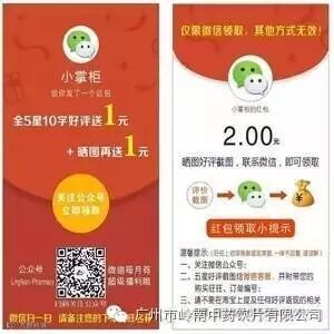 ❹、关注微信公众号,评价晒图送微信红包,评价+晒图送2元微信红包。