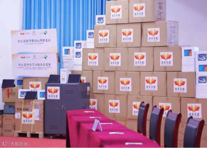 2023年,拔萃集团为台江教科局捐赠移动心理阳光站,包括平板电脑等设备和软件系统;还为五所学校捐赠办公电脑和打印机,提升当地教育软硬件水平。