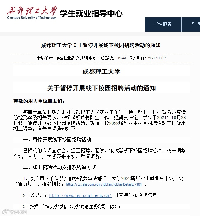 理工大学疫情防控要求,取消公司2022届校招成都理工大学站