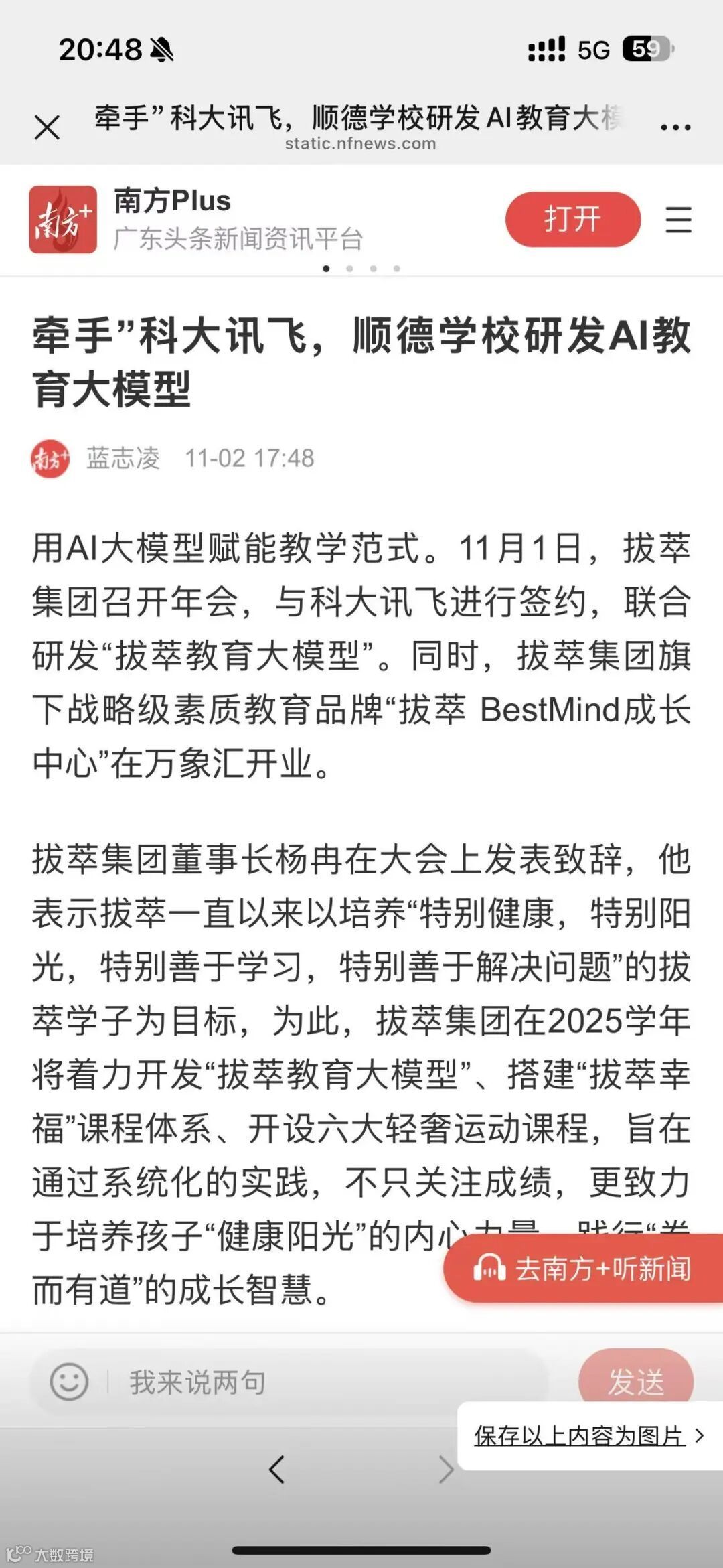 晚宴期间,拔萃集团与科大讯飞完成签约,联合研发"拔萃教育大模型"。该模型依托科大讯飞的教育大模型技术底座,深度融合拔萃集团多年积累的教学数据,将精准生成学科能力进阶、核心素养培育、个性化知识图谱与动态学习规划的学生专属数据库。并特聘教育部长江学者、中国人工智能学会会士、讯飞AI研究院执行院长、认知智能全国重点实验室副主任王士进为拔萃集团首席科学家。