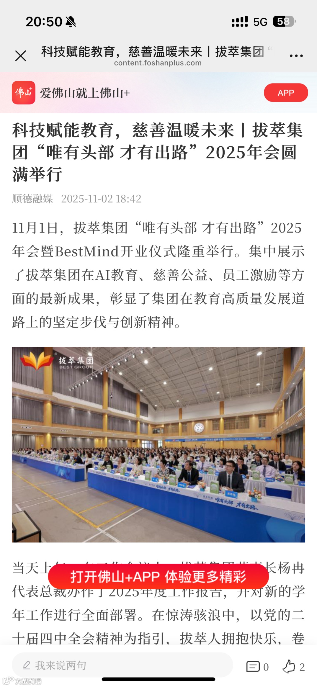 11月1日,拔萃集团“唯有头部 才有出路”2025年会暨BestMind成长中心开业仪式在顺德隆重举行。本次年会集中展示了集团在AI教育、慈善公益、员工激励等方面的最新成果,彰显了拔萃在教育高质量发展道路上的坚定步伐与创新精神。