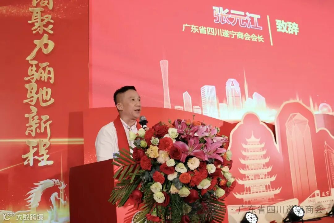 广东省四川遂宁商会会长张元江在致辞中回顾了商会过去一年的工作成果,并展望了未来发展蓝图。他感谢各界尤其是广东四川商会一直以来的支持与协作,表示将继续以党建为引领,以服务会员、赋能企业为核心,积极促进川粤两地产业链深度融合,持续投身公益事业,为两地经济社会高质量发展贡献遂商力量。