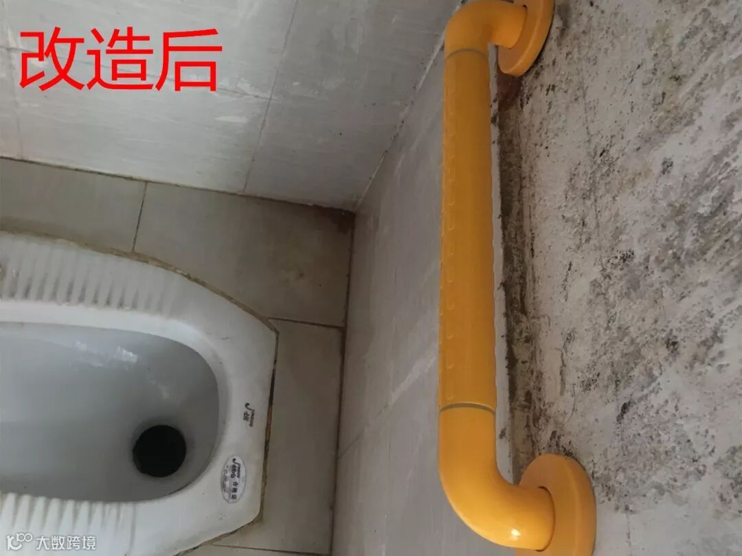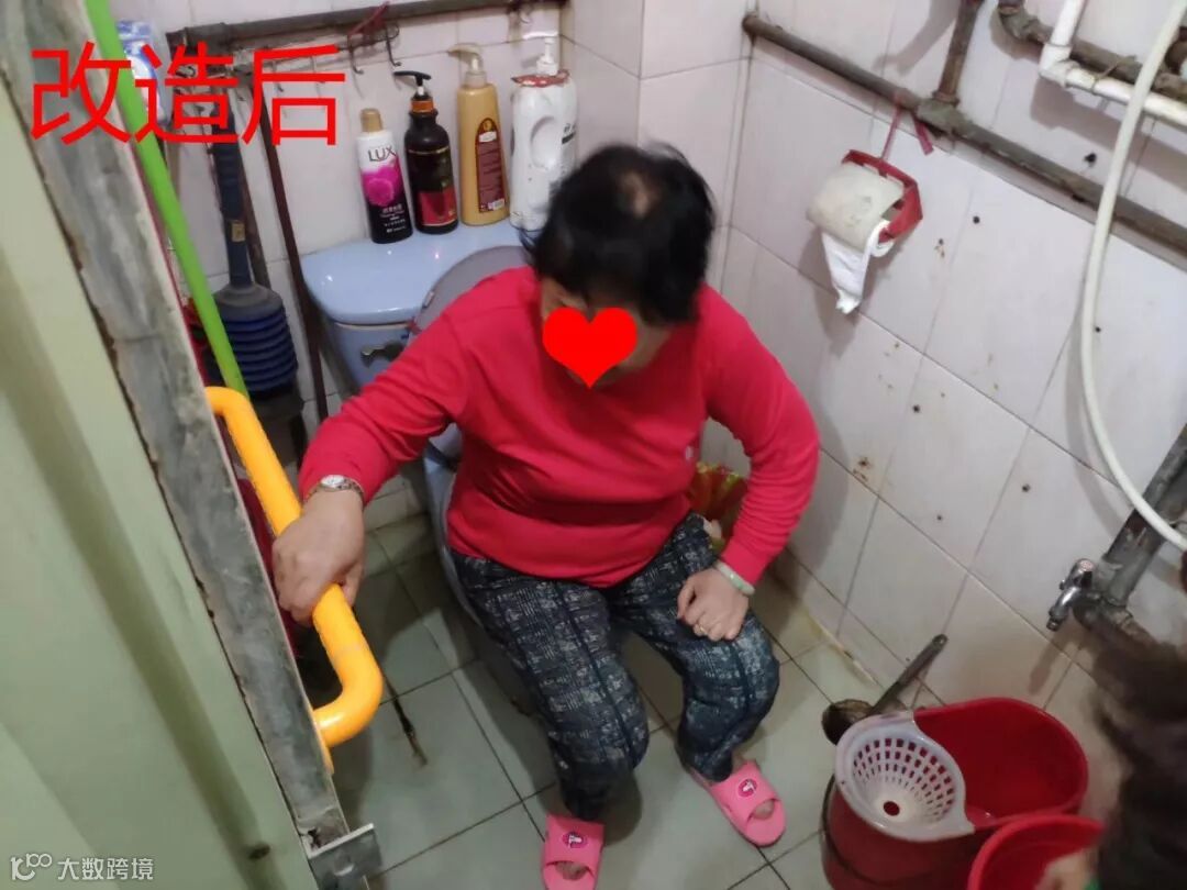 ➤因易婆婆长期的风湿导致站立的时候十分吃力,洗手间也是旧式的蹲厕,时间长了腿部会麻痹,容易摔跤。考虑到这个问题,义工队在洗手间为长者安装了扶手。使居家安全改造真正为长者带来便利。