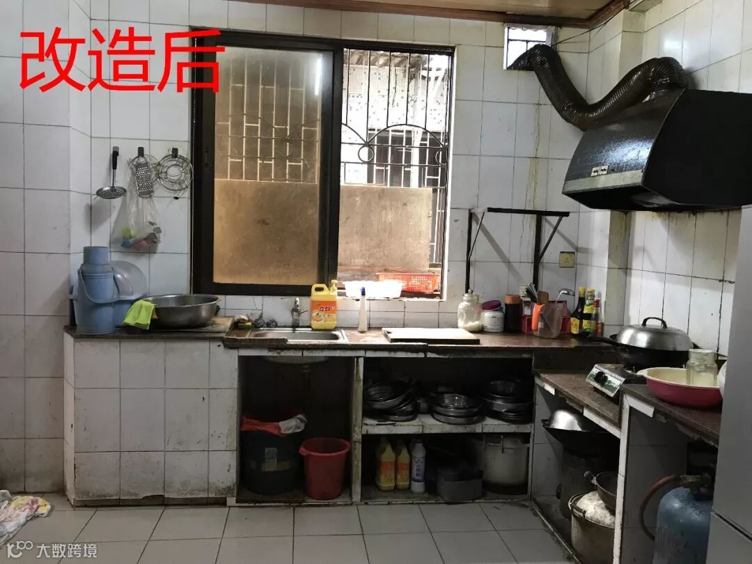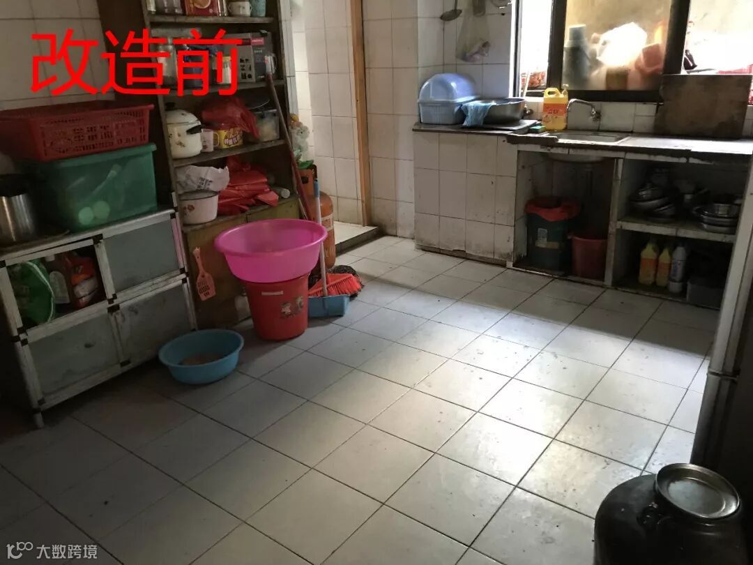 ➤改造前:长者房外没有扶手,距离客厅有一段距离,对行动不便的长者来说是非常不方便;厨房的杂物堆积太多,容易滋生细菌。