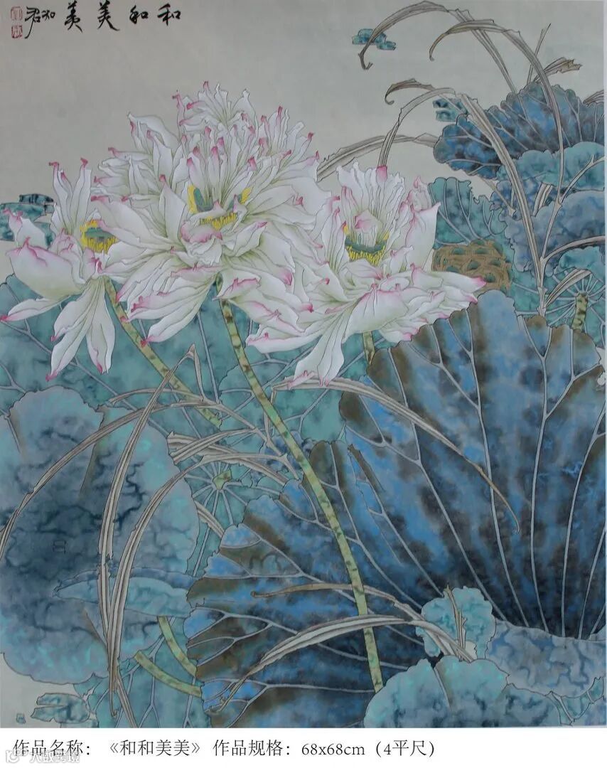 第四是市场认可。王希孟的作品今日是无价之宝,傅抱石作品拍出2.3个亿,张大千1.9个亿,刘知君的作品2019年曾被拍出150万私藏,目前价格仍在快速上涨,作为“中华泼金绘画第一人”,未来可以期待!