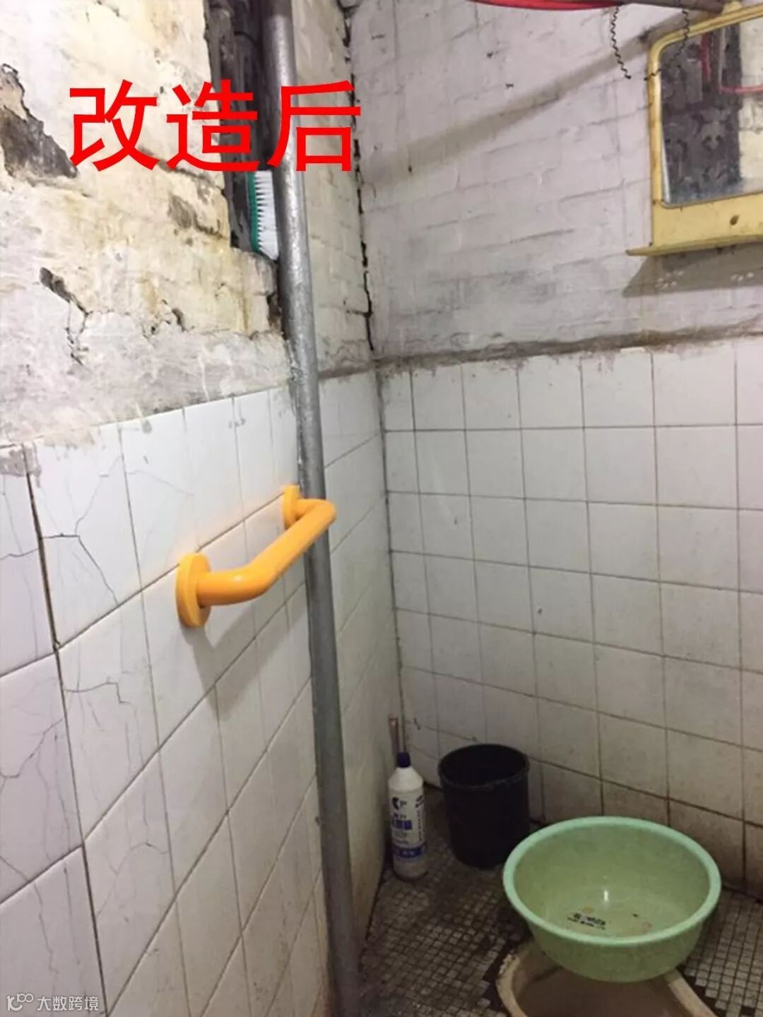 ➡改造前:洗手间潮湿阴暗,张婆婆平时出入容易跌倒。