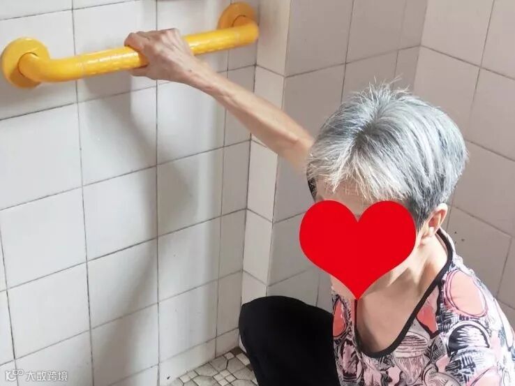 ➡改造后:洗手间安装了扶手后,刘婆婆迫不及待试试。